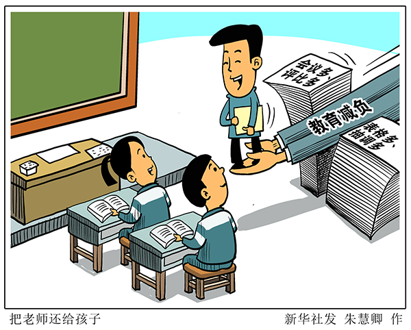 让教师潜心教书、静心育人,把更多时间和精力花在孩子们身上、投入到提升教学能力中,把时间还给老师,把老师还给孩子——这是教师和家长的心声,也是全社会的呼声。(新华社记者胡浩)