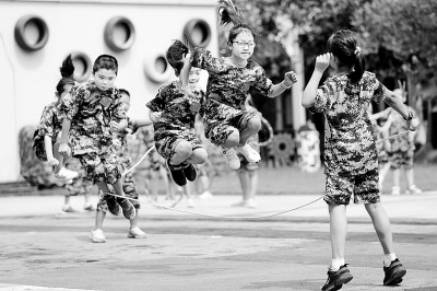 浙江省湖州市德清县武康街道妇联开展以“我是小小军人”为主题的少儿军事夏令营。王正摄/光明图片