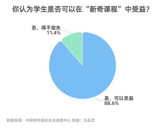 张烨觉得这些课程能让学生了解相关领域的基本知识,可以让学生开拓眼界、增加认知。但如果学校不知道开了这些新奇课程之后的效果,不确定课程是不是真的对学生的身心发展有好处,学生自己也不明白这些课程是在干什么,那就很盲目。