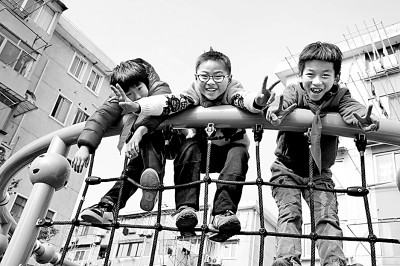 1月18日,上海市徐汇区凌云街道凌云新村社区放寒假的孩子们在一起玩耍。新华社发