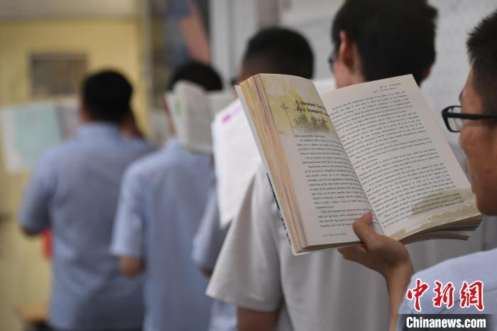 资料图:教室外走廊里,老师们为考生们答疑解惑,助力学生迎战高考。 何蓬磊 摄