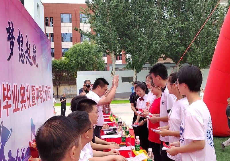 赵俊瑞校长为初三学子颁发毕业证书,随着一份份毕业证书的发放,毕业生们与五中的故事也将落下帷幕,但青春不散,记忆不散。