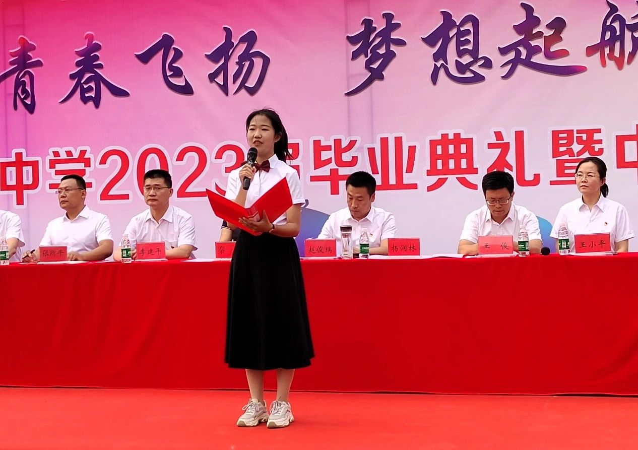 李建平副校长宣读《2023届毕业决定》,他温情回顾了初三学子成长的点滴往事,对同学们在初中拼搏所取得的优异成绩表达了祝贺,希望同学们能深怀一颗感恩之心,奔赴青春的下一个驿站。
