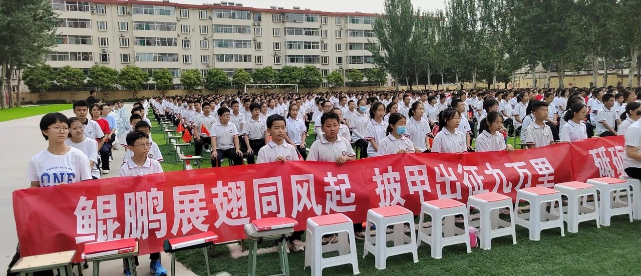 在初三学子即将踏上新征程之际,赵俊瑞校长发表动员讲话,他与同学们一起回顾了三年的校园生活,殷切嘱托和勉励全体初三学子,给予了同学们阔步远行,奔赴山海的勇气和力量!