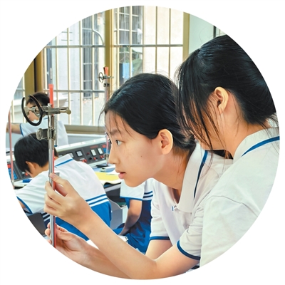 广州市贸易职业高级中学综合高中班学生在上物理实验课。戚桂雄摄