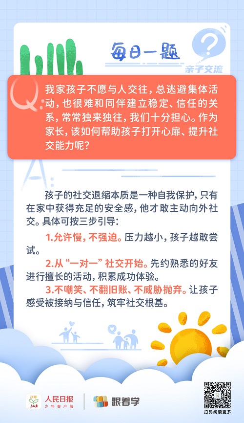 每日一题丨孩子孤僻逃避社交,家长该如何引导?