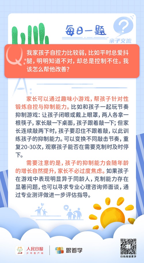 每日一题丨孩子自控力差,总控制不住抖腿,该怎么办?