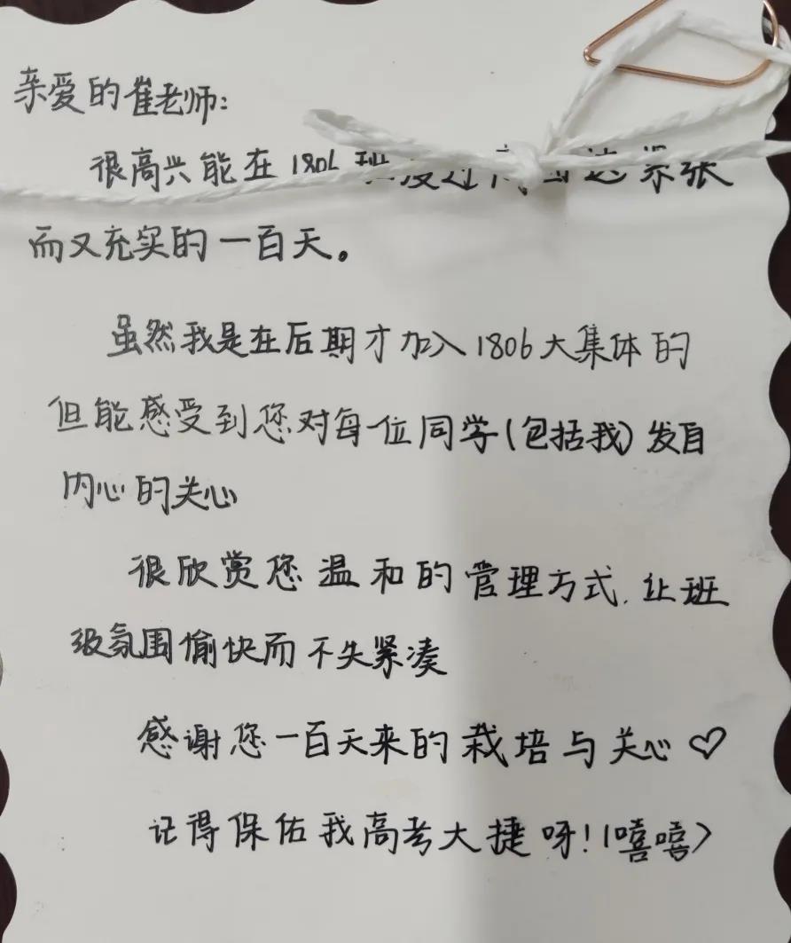 三年来,老师们起早贪黑陪伴,宿管“妈妈”无微不至地关心照顾,餐厅工作人员在油烟和高温的环境中提供一日三餐。在离别之际,同学们为他们献上了一束束鲜花,留下了一封封感恩的信——感谢他们的精心培养、辛勤劳动和热情服务。