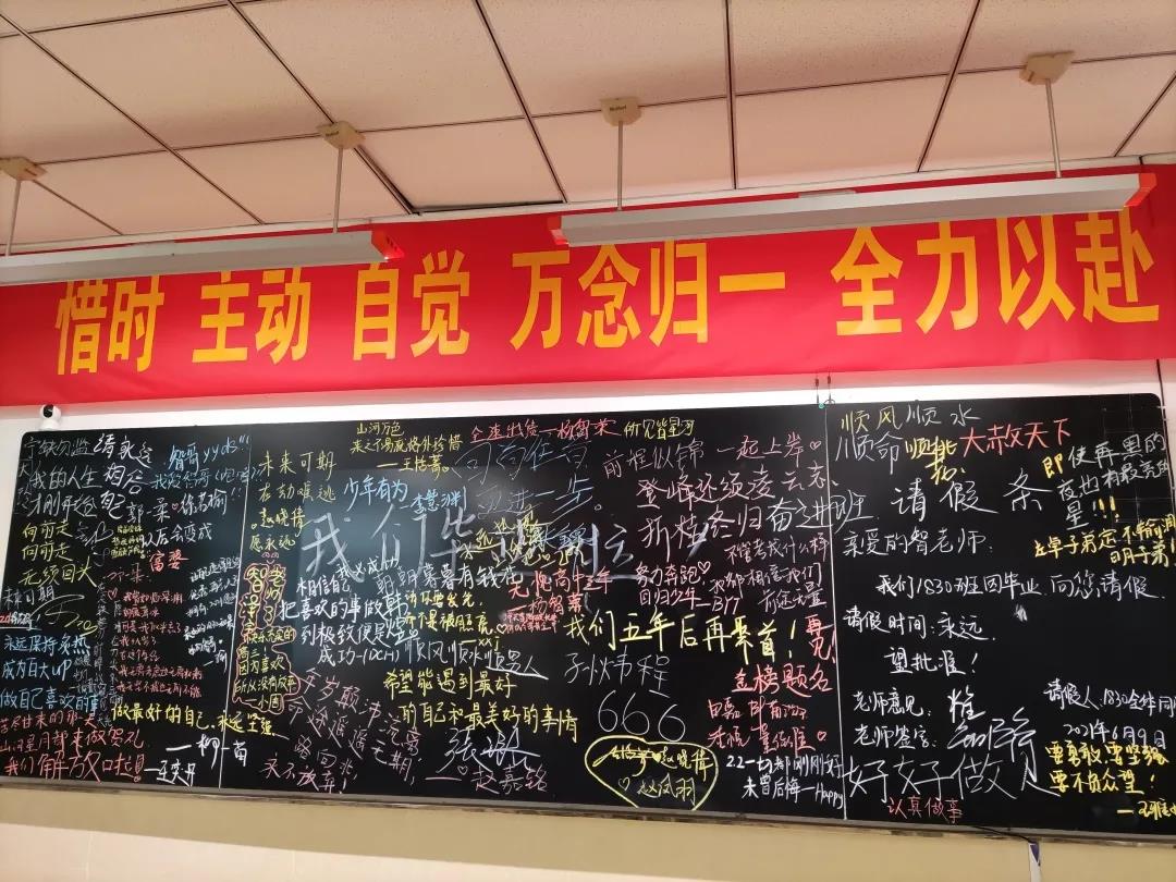 同学们还在黑板上留下祝福,用自己的亲身经历寄语学弟学妹,希望他们坚持梦想,在最美好的青春岁月敢于拼搏,超越自我,逐梦未来。