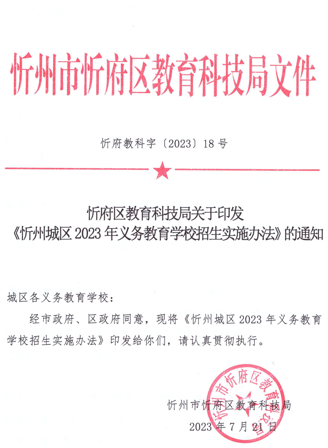 8月11日,忻府区教育科技局统一组织人才中学、人才小学、实验双语学校、星云小学四所学校进行摇号,并及时公布录取结果。8月12日至13日,办理入学手续。