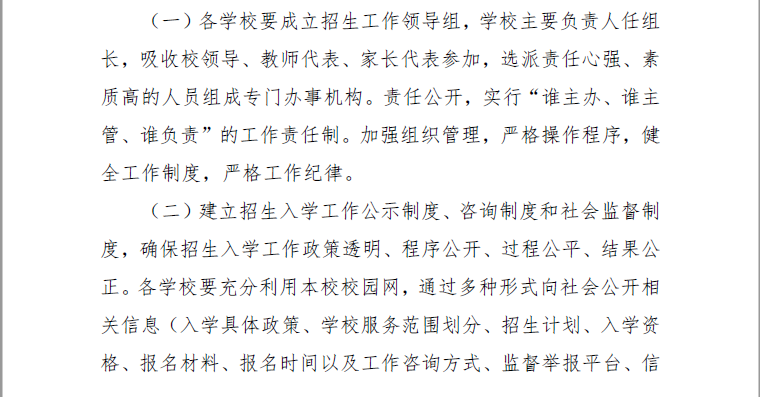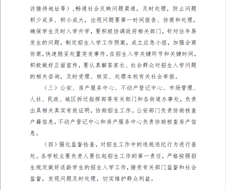 (二)坚持公办学校“就近、划片、免试、分配”,民办学校严格按照招生计划、招生时间、招生方式进行统一招生