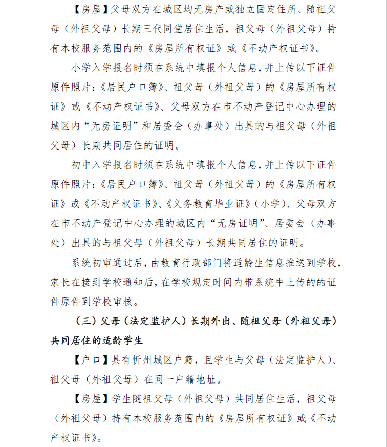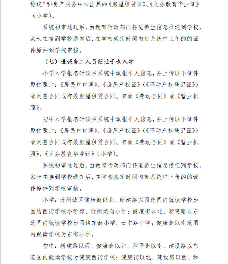(四)8月8日,忻州市教育局统一组织忻州市北方中学、忻州现代双语学校、忻州市康乐小学、忻州师范学院附属外国语中学、忻州实验中学五所学校进行摇号,并及时公布录取结果。8月9日至10日,办理入学手续。