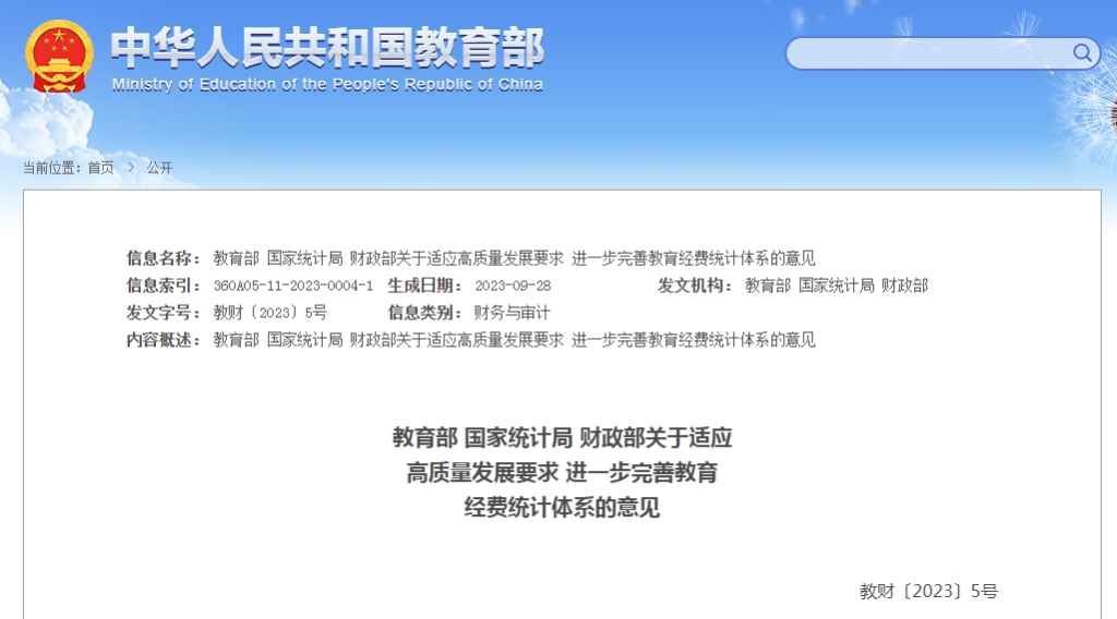 记者11月7日从教育部获悉,教育部、国家统计局、财政部近日联合印发文件,要求完善教育经费统计指标,坚持简约、易取得、可核查的原则,加强与政府会计制度和新修订的中小学、高等学校财务制度衔接,精简过时的、利用率低的指标,增加反映新形势、新变化的指标,进一步规范采集指标口径,科学设计统计报表,全面反映教育经费统计调查内容。