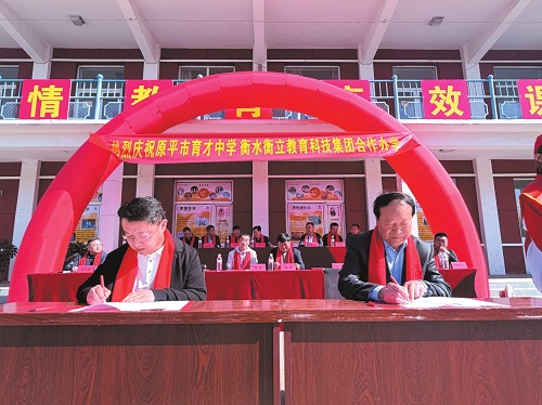 本报讯(记者徐国华)4月10日上午,原平市育才中学与衡水衡立教育集团联合办学签约暨揭牌仪式隆重举行。原平市教育局相关领导、双方学校及集团负责人、教职工代表及学生代表共同出席本次活动。