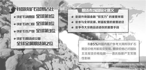 以铁矿石为例,我国是全球最大的铁矿石消费国和进口国、第三大生产国,全球70%的贸易量流入中国,我国铁矿石期货成交量也已位居全球金属期货第二名。但是,由于铁矿石期货市场参与者主要局限于国内,所形成的价格对国际市场的辐射力和影响力还不够。