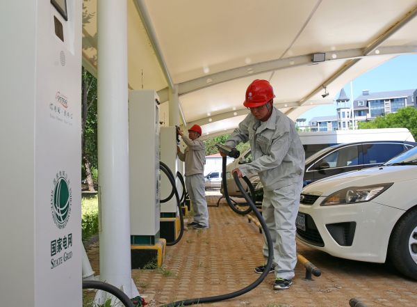 资料图片:工人在充电站工作。 新华社记者杨世尧摄
