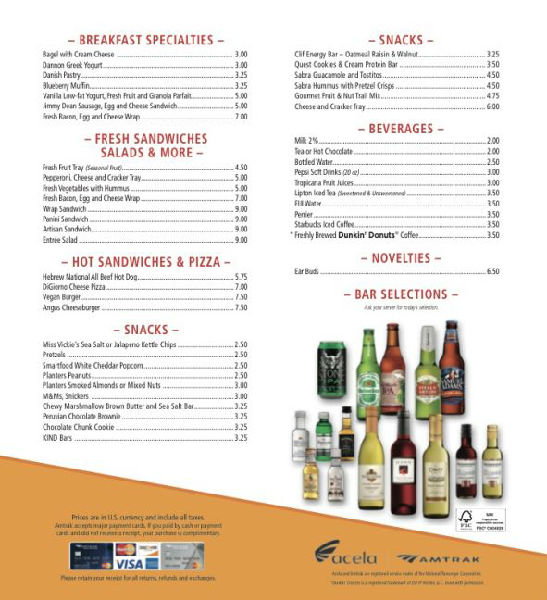不过Acela上的食品价格倒是与一般美国饭馆里的差不多。比如,一个汉堡大约六七美元。