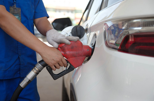 资料图片:5月25日,河北省武邑县一家加油站的工作人员在为汽车加油。新华社记者 朱旭东 摄