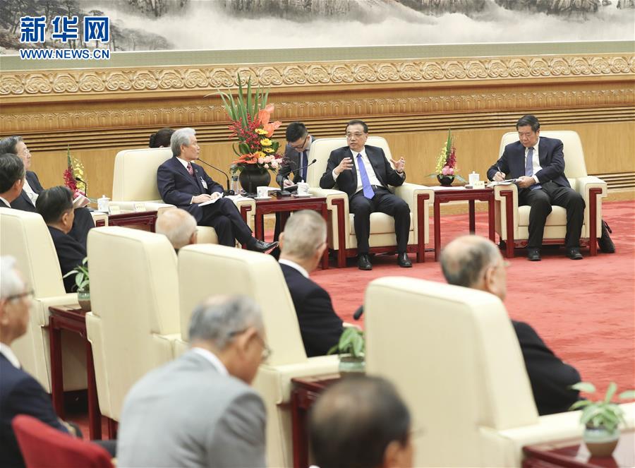 11月21日,国务院总理李克强在北京人民大会堂会见日本经济团体联合会会长榊原定征、日中经济协会会长宗冈正二、日本商工会议所会长三村明夫率领的日本经济界代表访华团并同他们座谈。新华社记者 庞兴雷 摄