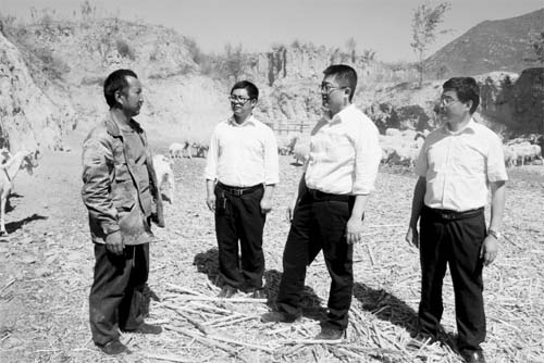 为了帮助养殖户扩大养殖规模,破解资金周转不畅的难题。五台农商银行向养殖户推荐了小额扶贫信贷模式,签定帮扶协议。图为工作人员走进贵宝养殖专业合作社向养殖户王贵宝了解合作社经营发展情况。