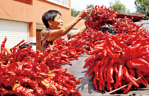 位于河南省新安县北冶镇的马行沟村曾因开采铝土矿而满目疮痍。近年来,该村在相关部门的支持下,开展废旧矿山植被恢复,昔日的矿区种上了经济作物和景观作物,治理修复后的矿区旁建设了搬迁惠民小区,配套休闲广场、健身器材等设施。经过综合性治理,曾经的废弃矿山“变身”绿色家园。据介绍,河南省新安县把矿山修复作为生态建设的重点,开展矿山修复集中整治行动,全县将继续加大力度恢复治理矿坑。图为8月29日,河南省新安县北冶镇马行沟惠民小区居民在晾晒辣椒。据新华社 记者 李安