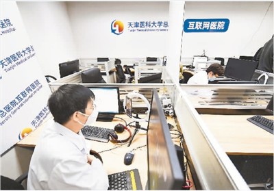 天津医科大学总医院互联网医院开通“互联网门诊”服务,医生用手机视频进行线上问诊。新华社记者 李 然摄