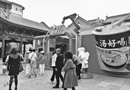 “什么!方便面也有主题店?”5月3日,山西晚报记者在钟楼街上有了惊奇的发现。跟随着脚下的指示图标,在步行街钟楼后广场上,一个白象泡面工厂沉浸式主题店出现在眼前,巨大的方便面桶从房间里伸出,视觉冲击力极强,吸引很多年轻人进店打卡。店内摆放着从面片制作成面条,最终成为方便面面饼的仿真模型,以及制作方便面时工人所穿的工服。只要按要求做完打卡“任务”,还能免费获得一桶写有自己名字的专属方便面。据现场工作人员介绍,这个泡面工厂“五一”期间每天有三四万人光顾,“没想到逛街还能逛到这样有趣的体验店,我完成了打卡任务,给孩子拿了一桶写有他名字的方便面,感觉太有趣了!”现场一位女士高兴地说。