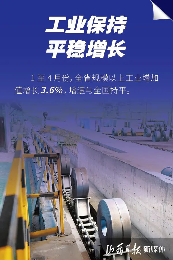 5月19日,山西省统计局公布1至4月份,全省经济运行情况:1至4月份,全省工业生产平稳增长,消费市场加速回暖,就业物价总体稳定,经济运行延续恢复向好态势。一组海报,了解1至4月山西经济数据。