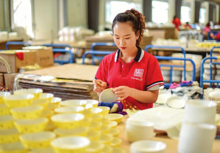 无独有偶,同样生产骨瓷的应县富彩陶瓷有限公司,在今年过完年复工不久,就陆续接到大批订单。目前,富彩陶瓷拥有40多项研发专利,公司生产的骨瓷骨粉含量高达42%,远超国家标准。高含量的骨粉使得企业生产的骨瓷产品呈现出“白如玉、薄如翼、明如镜、声如磬”的品质,深受国内外客户的认可和青睐。