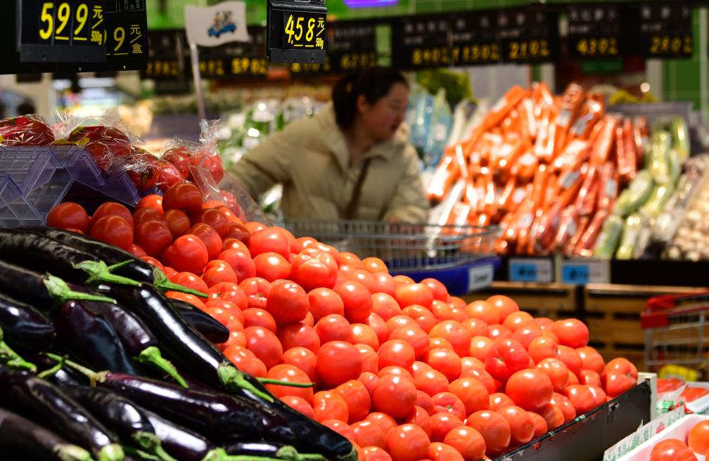 消费者在江苏省无锡市一家超市里选购蔬菜(3月9日摄)。新华社发(还月亮摄)