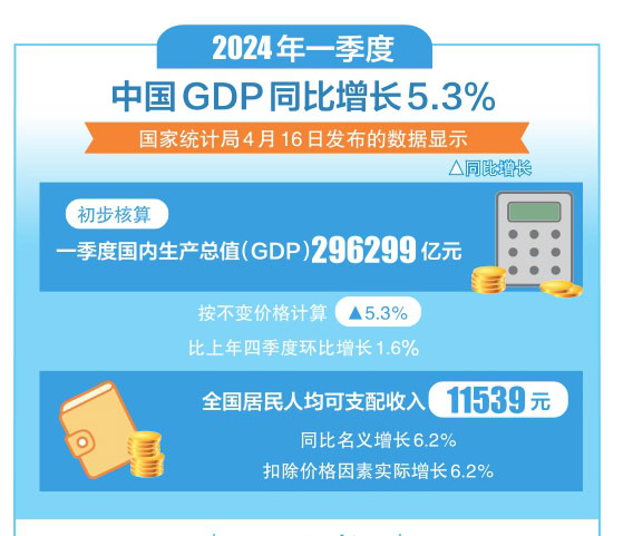 4月16日,中国经济2024年首季报出炉。国内生产总值同比增长5.3%,固定资产投资同比增长4.5%,高技术产业投资同比增长11.4%……一季度,中国经济增长较快、质效向好,实现良好开局。但严峻复杂形势下,有效需求不足、社会预期偏弱等问题仍然存在,还需进一步巩固和增强经济回升向好态势。