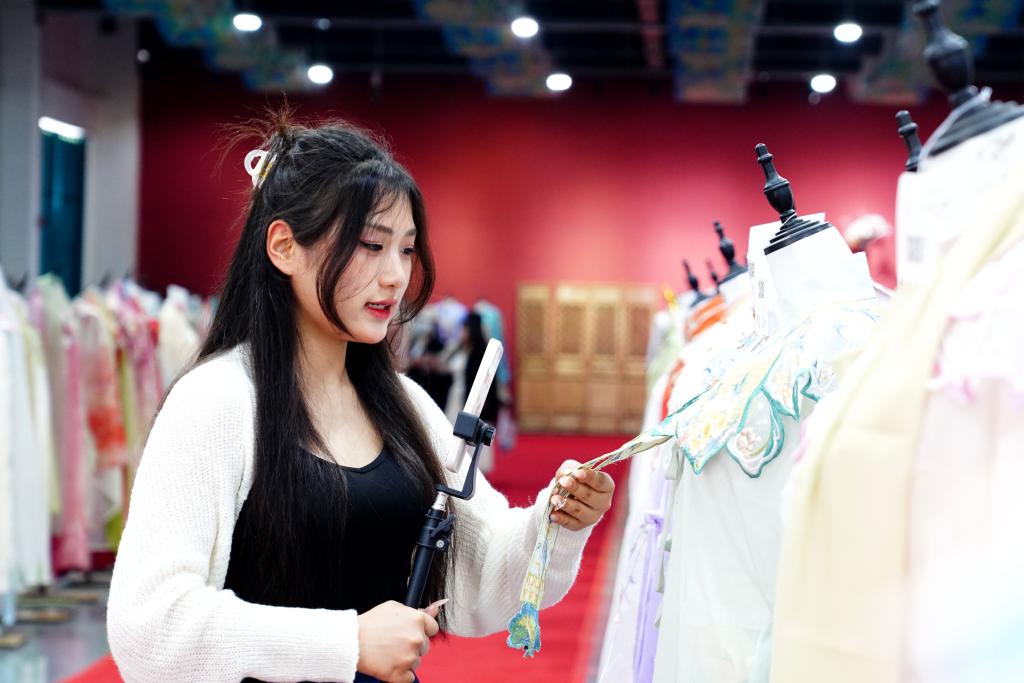 “85后”的黄晓燕曾在南方打拼十余年,如今成为曹县穿越大唐汉服云仓经理。“虽然是在乡镇工作,但贴近市场,节奏非常快,每天顾客络绎不绝。”她在展厅里边走边介绍,公司自主设计的汉服涵盖唐、宋、明、清等品类,并根据人们日常着装特点加以改良。在这里,不仅能够私人订制服装,还有AI直播改善线上消费体验。