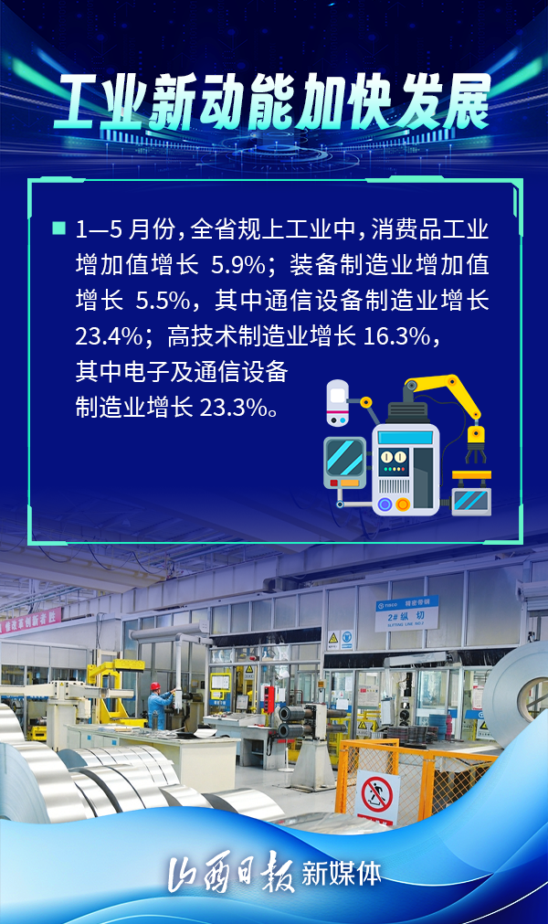 6月下旬,省统计局发布了今年1—5月份全省经济运行数据。数据显示,全省上下坚持稳中求进工作总基调,着力推动高质量发展,精准高效推进大规模设备更新和消费品以旧换新,工业生产进一步好转,投资、消费平稳增长,就业、物价总体稳定,全省经济延续稳定恢复态势。