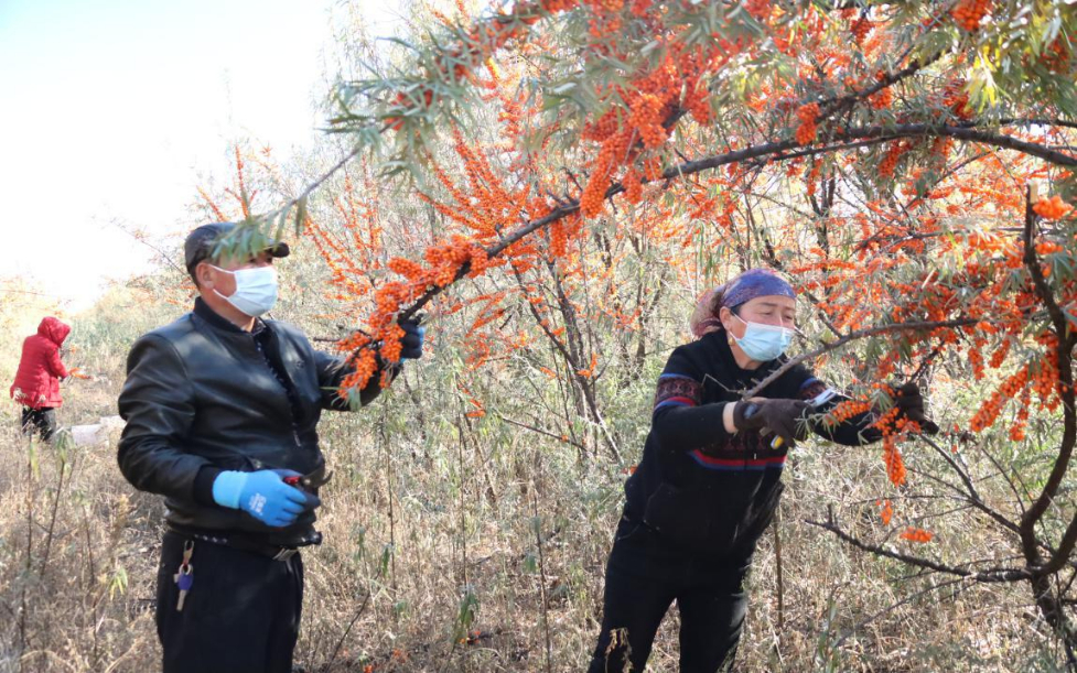 汇源集团有关负责人给记者算了一笔账。他说,在沙棘果丰收季,如果按照枝条果采摘费每公斤1.5元计算,人均每天采摘150-200公斤,一天即可收入300元左右,一个采摘期按1个月计算,到汇源沙棘基地工作的农牧民人均可获得采摘收入八九千元。
