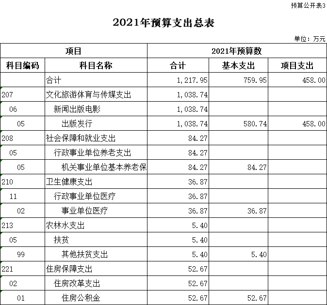2、项目支出120万元,比2020年减少15万元。主要为取消《文化旅游》周刊经费15万元。广告收入专项经费120万元,主要用于办公费、维修费、水电费、差旅费、采暖费、邮电费等日常开支。
