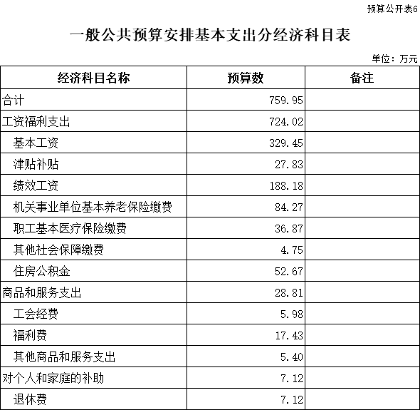1、基本支出759.95万元,比2020年增加28.5万元,基本支出系按现有人员工资标准和公共经费定额标准核定,主要用于保障机关正常运转、完成日常工作任务而发生的各项支出。其中:工资福利支出724.02万元,对个人和家庭的补助支出7.12万元,商品和服务支出28.81万元。