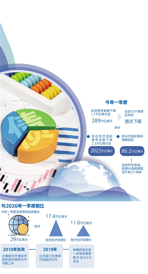 日前,国际金融协会发布了最新的全球债务监测报告。好消息是全球债务规模在2021年一季度出现10个季度以来的首次下降;坏消息是全球债务规模体量巨大、偿债能力不均衡等问题依然存在。