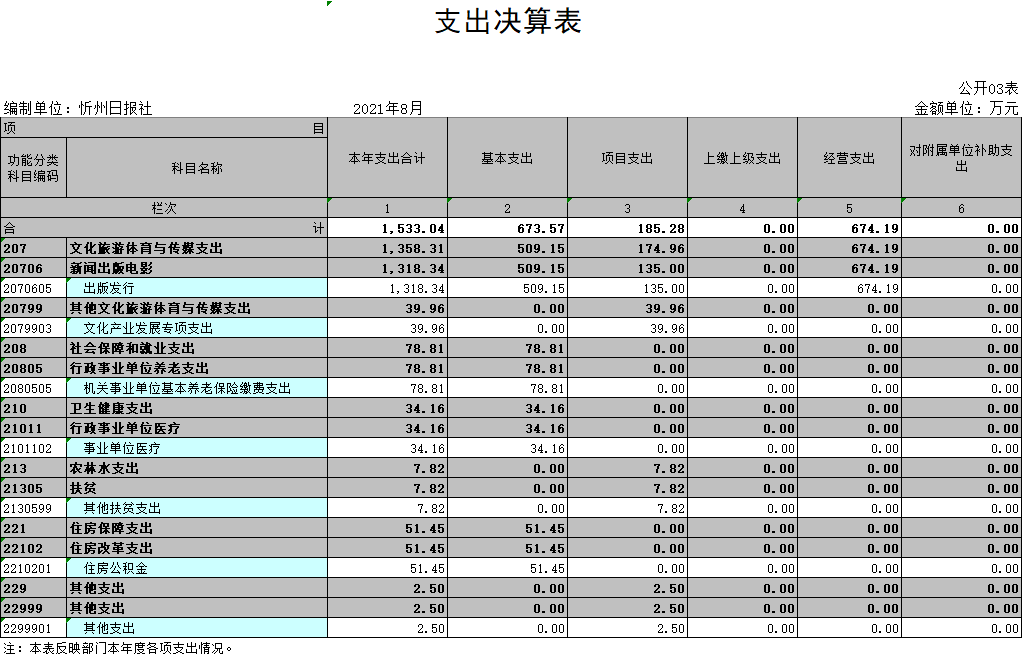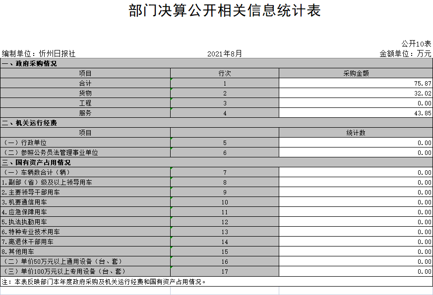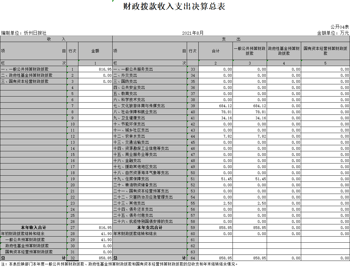 (五)政府性基金决算情况:忻州日报社不涉及政府性基金,故政府性基金决算支出为0.