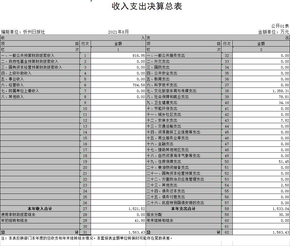 (三)部门决算单位构成:忻州日报社是一级预算单位,无下属单位。部门预算只有一个单位,即忻州日报社。