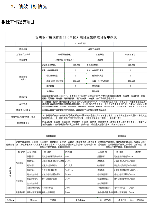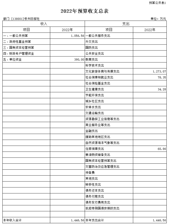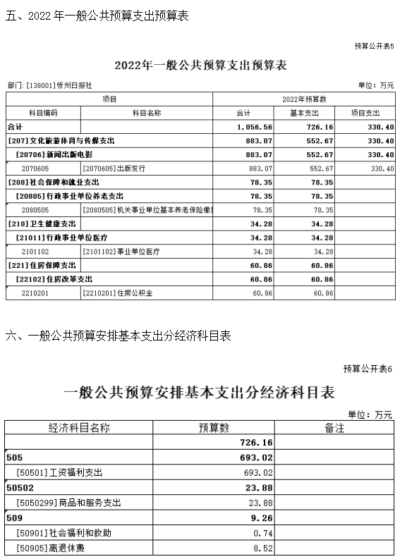 第二部分2022年度忻州日报社预算报表