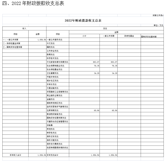 一、2022年预算收支总表