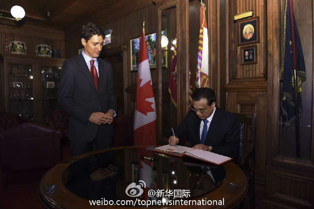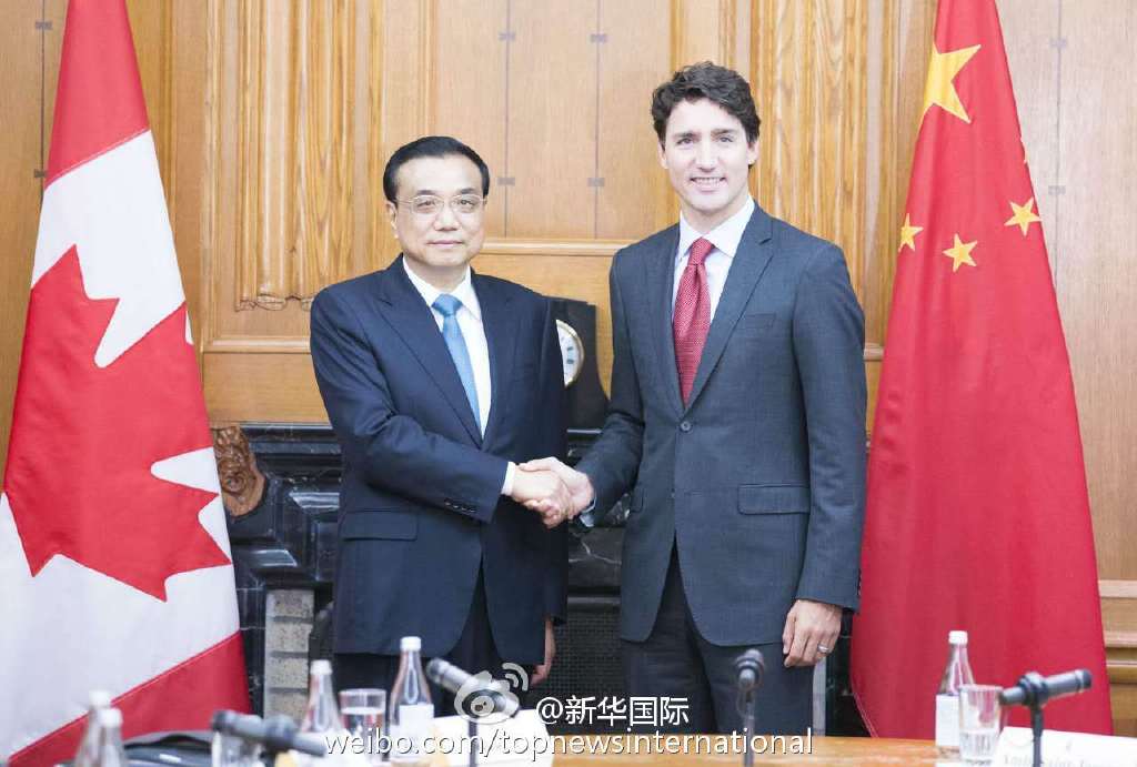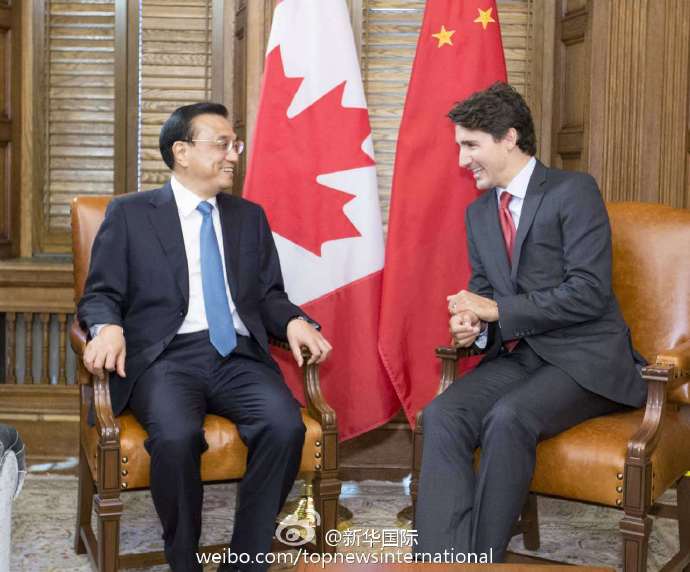 新华网北京9月23日电 当地时间22日,李克强总理与加拿大总理特鲁多举行会谈,确认正式启动中加总理年度对话机制。会谈中,两国总理就中加关系和共同关心的地区国际问题进行了广泛深入的交谈。这是李克强和特鲁多在不到一个月时间里第二次会晤。特鲁多本月初刚刚访华。(据新华社“新华国际”微博报道)