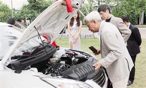 图为越南客户在了解东风乘用车。 本报驻河内记者 崔玮祎摄