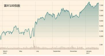 与一年前的低点相比,富时100指数涨幅超过30%。(英国《金融时报》网站)