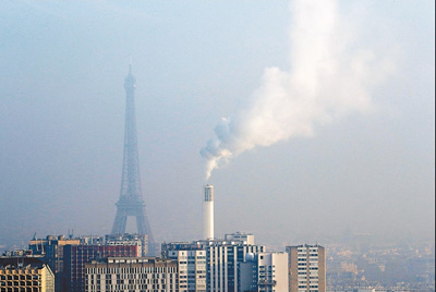 2014年法国巴黎被前所未有的雾霾所笼罩,空气中各项污染物都严重超标。据法国媒体报道,巴黎市政府采取了一些应对措施,但收效甚微,从去年12月到现在,巴黎多次出现重度雾霾天气,重要地标埃菲尔铁塔也是时隐时现,空气污染严重程度为过去10年来最高。据“德国之声”报道,德国一半的电力是火电,由于燃烧大量的煤,该国成为唯一一个突破欧盟设定4条污染物排放红线中3条红线的成员国。