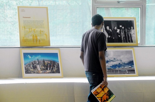 资料图:在印度孟买苏迈亚大学,一名学生参观该校举办的中国图片展。新华社记者刘亚南摄