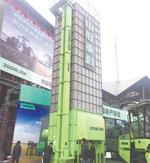 在日前于河南郑州举行的2017全国农业机械及零部件展览会上,中联重科展出的烘干机械吸引了参观者驻足。 本报记者 刘慧摄