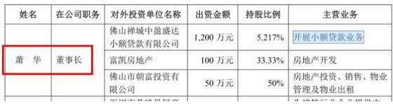 野马财经发现,萧华是一家名为“佛山禅城中盈盛达小额贷款有限公司”(下称:中盈盛达)的股东。该公司注册资本2.3亿,成立于2011年,主要业务是办理小额贷款、开展中小微企业融资、理财咨询。
