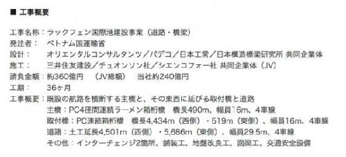 日本政府不仅参与了投资,同时日本工营、日本构造桥梁研究所参与了桥梁设计,三井住友建设和两家越南本土公司共同为施工方。