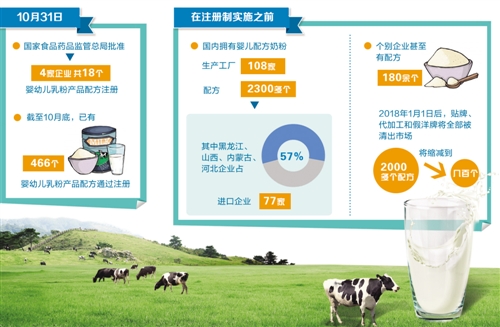 在业内人士看来,随着通过注册的企业名单不断公布,国内奶粉行业的混乱局面也有望得到改善。据统计,此前,个别企业甚至有180余个配方。明年1月1日后,贴牌、代加工和假洋牌将全部被清出市场,2000个配方将缩减到几百个。